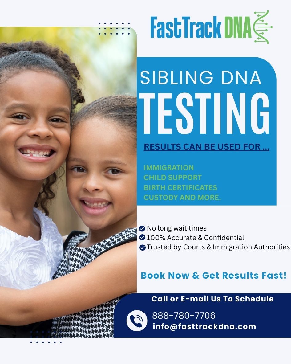 Need to confirm a sibling relationship? Our sibling DNA testing in Chicago determines full, half, or unrelated sibling status with reliable lab analysis.